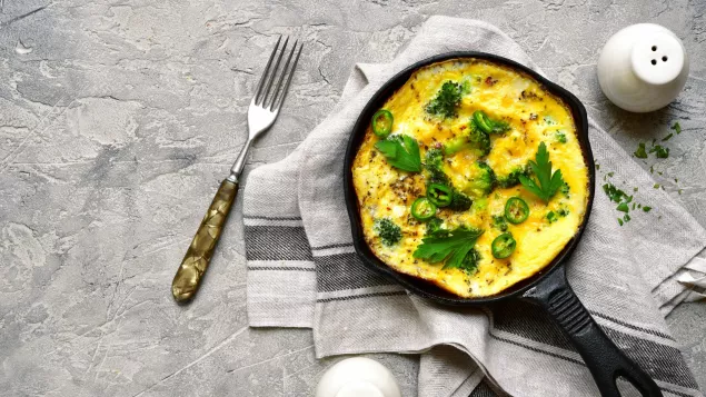 4. Voeg vervolgens het beslag aan het garnituur toe en maak de omelet verder af op de bekende wijze.